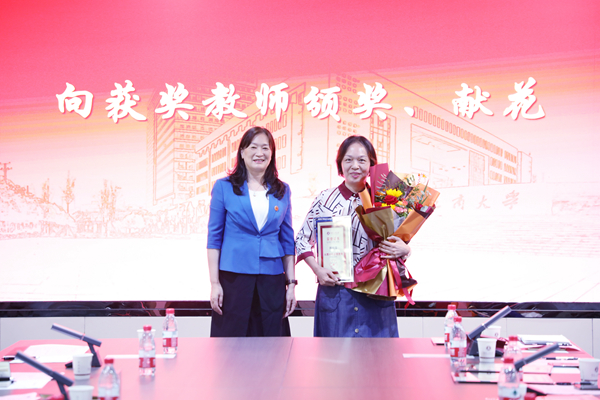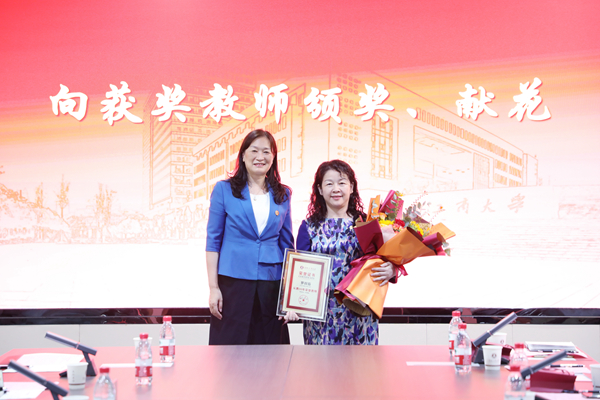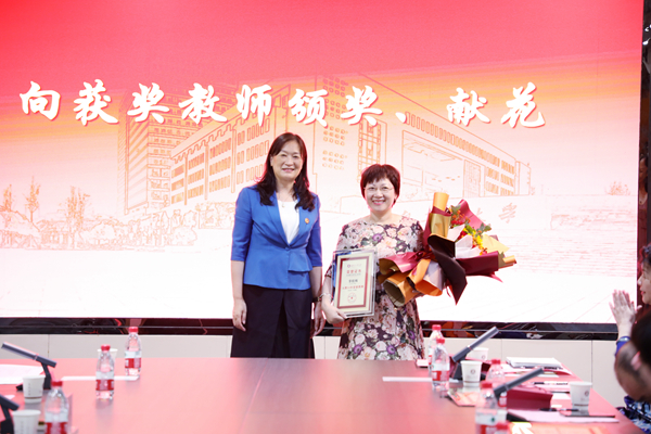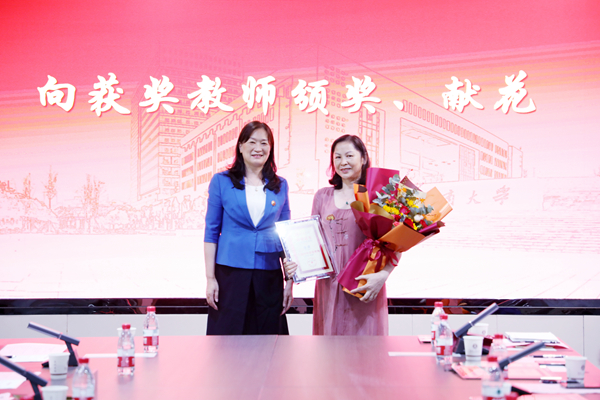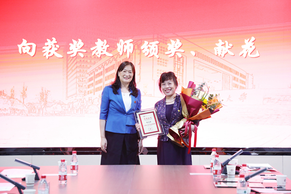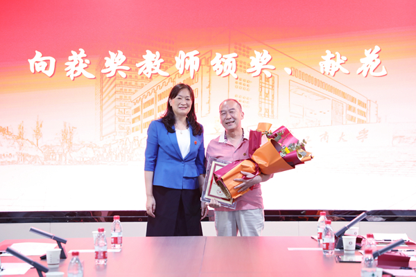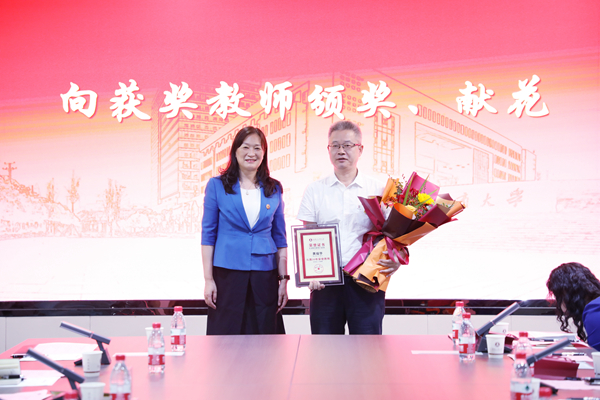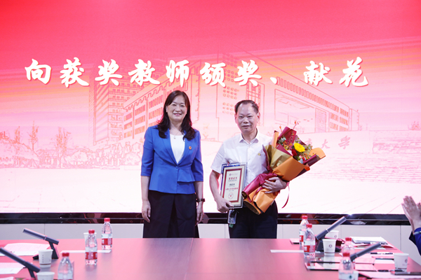 校党委书记陈晓红院士代表学校向获奖教师颁奖。